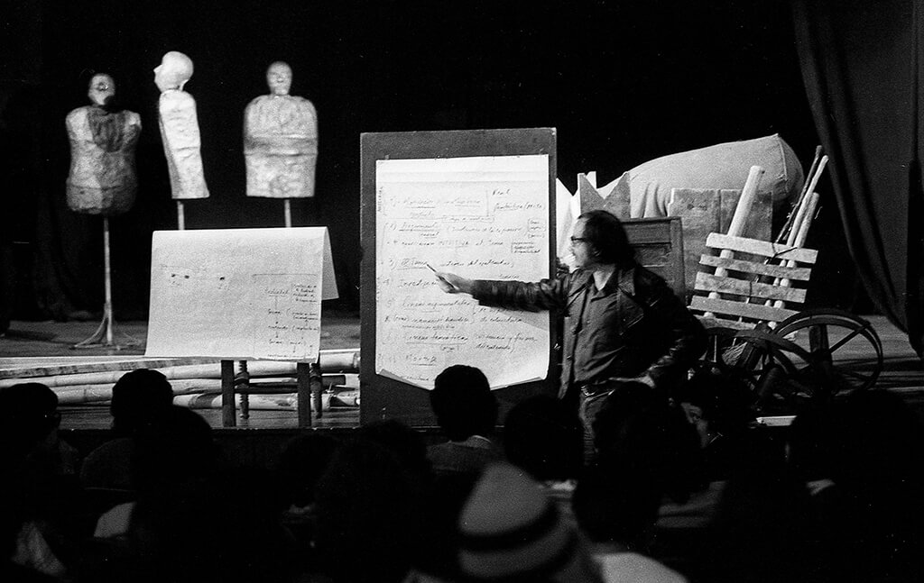 Esta muestra no es apenas un ejercicio de memoria, esa sería una reducción. Es una puesta en evidencia de todo lo que ha estado oculto, por descuido o por omisión, en un esfuerzo por otorgarle a la reciente historia del teatro colombiano un territorio merecido, el de la vigencia más que el de la nostalgia. No son las imágenes de hechos perdidos en el tiempo, sino de un proceso actual, que continúa con muchos de sus protagonistas y a la luz de las indagaciones que se gestaron entre los años 60 y 90, revisadas y cuestionadas permanentemente. El registro de una generación de artistas y de sus esfuerzos, de sus procedimientos creativos, y de una enorme cantidad de personas que se sumaron a la construcción de una identidad y un lenguaje desde el teatro. No se puede negar la presencia contemporánea de esos gestos, de los procesos de formación de actores, dramaturgos, directores y público que están registrados en esas imágenes. Aquí se salda una deuda, no solo con las figuras más relevantes de nuestra breve historia teatral, sino con aquellos figurantes que nunca aspiraron a estar en el pie de foto, con esos espectadores capturados por el azar, con los lugares transformados para el ritual, con el oficio, con los actos que procuraban mantener la actividad y lo lograron, en contra de todos los pronósticos. No se trata en este caso, por suerte, de imágenes sin historia, no son ficciones, no se ha instalado una mitología, son la verificación de la enorme fuerza y pluralidad del teatro que somos, del presente.
