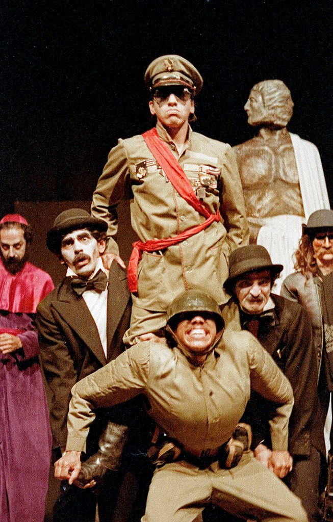 Teniendo en cuenta lo anterior, las fotografías de las múltiples representaciones que reposan en nuestro archivo, se exponen como un invaluable material documental pero también como el resultado de una exploración fotográfica que debió enfrentarse a una serie de exigencias, posibilidades y limitaciones. Aunque no ocurra con el material en su totalidad, incontables piezas dan muestra de una especial sensibilidad que se manifiesta en el impacto y la belleza de las composiciones fotográficas. Desde la vía documental, esta parte del archivo dedicada a la recopilación de las representaciones teatrales, permitirá darle un reconocimiento a numerosos grupos y obras que se presentaron en el marco de los encuentros nacionales y regionales. De esta manera, tanto los espectadores de esa época como las nuevas generaciones, podrán acceder a representaciones significativas que quizá no contaron con mayor repercusión. Como es inevitable —y por fortuna—, también estarán presente algunas representaciones canónicas como A la diestra de dios padre de Enrique Buenaventura, Soldados de Carlos José Reyes y Guadalupe años sin cuenta del Teatro La Candelaria, las cuales develan un elemento transversal en la gran mayoría de piezas recopiladas: la fuerte convicción ideológica en relación con la creación teatral y el deseo de quienes construyeron las obras por la construcción de un nuevo país. De estas sobresale no solo una práctica artística innovadora, sino un gran proyecto de desarrollo cultural en el marco de un movimiento sostenido en favor de la construcción de una dramaturgia propiamente nacional. A estas representaciones, y muchísimas más que no se encuentran contenidas en nuestro archivo, les debemos el coraje y la audacia de haberse alejado de una herencia teatral convencional europea y norteamericana con el propósito de emprender la búsqueda de una propia identidad. Su interés político; su transgresiones estéticas provenientes de vanguardias europeas como el teatro épico y el teatro del absurdo; su perspectiva ideológica encausada en el arte como revolución; su interés por acercarse a las prácticas populares y obreras; y quizá uno de los elementos más valiosos, su interés por la construcción de una nueva metodología teatral, hacen parte de una herencia teatral imprescindible para cualquier creador teatral colombiano. Es por eso que, además de enaltecer el trabajo realizado por quienes crearon las obras, este archivo permite reflexionar —si quien especta lo desea, por supuesto— en la conexión que existe entre ese pasado teatral y el teatro del presente, en vista de que la relación continúa visiblemente en algunos creadores contemporáneos. Ir hacia atrás por medio del archivo fotográfico, detenerse en él y reflexionar en relación con nuestro presente teatral, es quizá el ejercicio más valioso que cualquier observador podría atreverse a generar después de visitar este archivo.